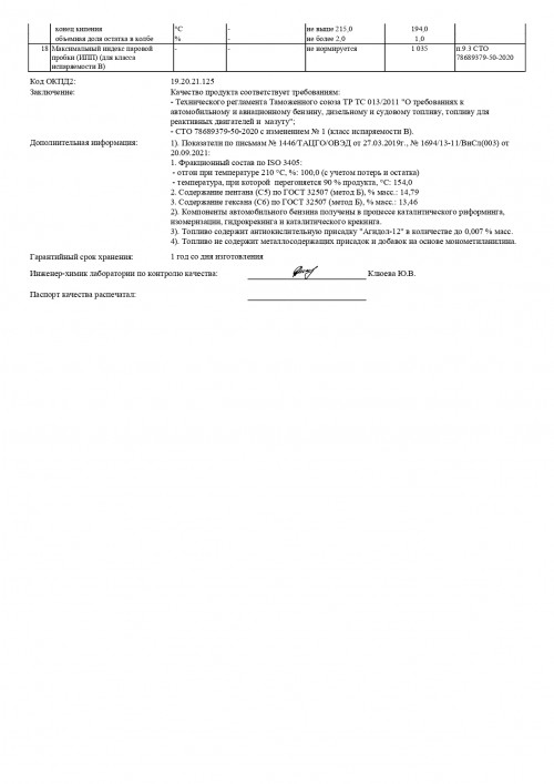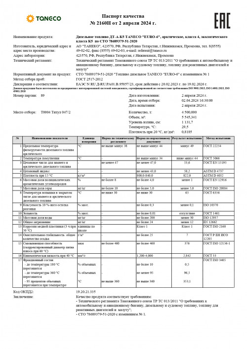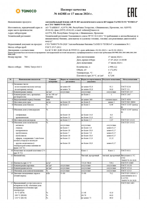 Паспорта качества